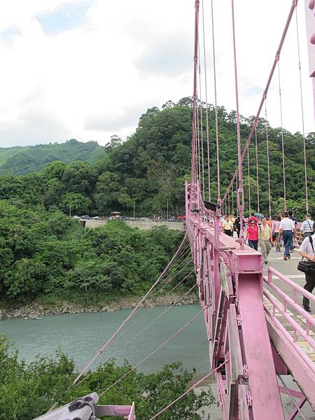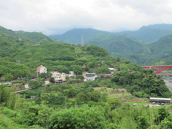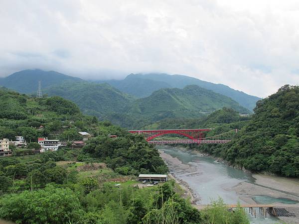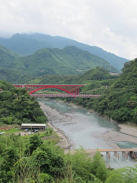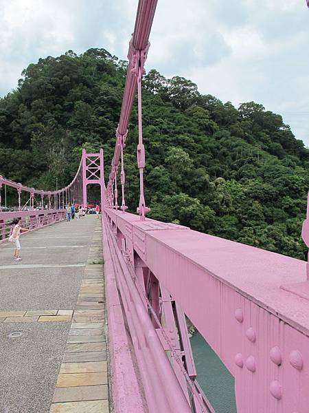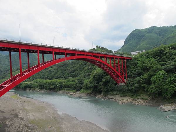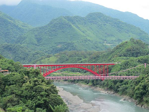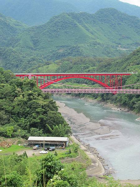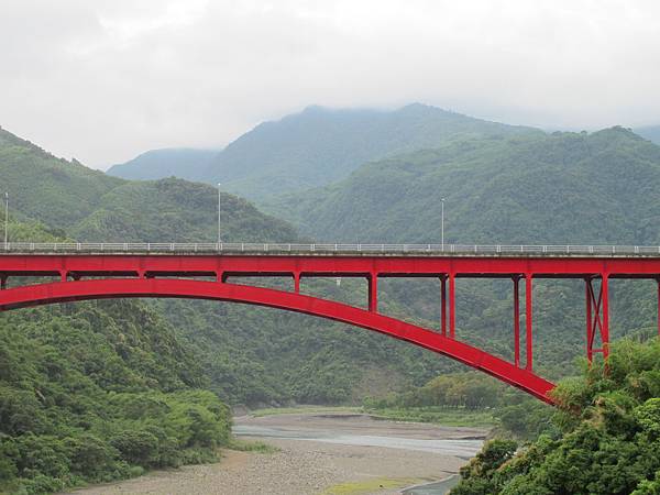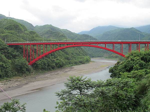 鮮紅色的橋身,身處在綠色山林裡,頗為醒目