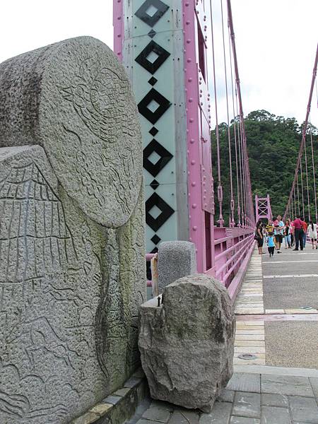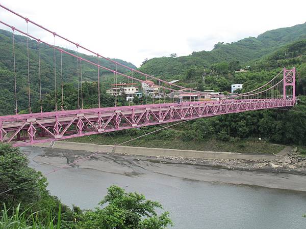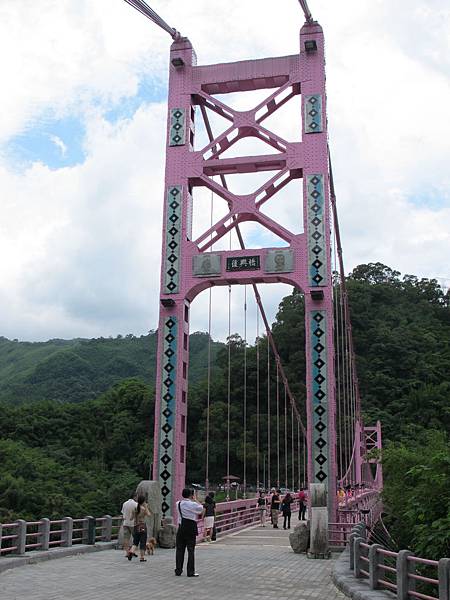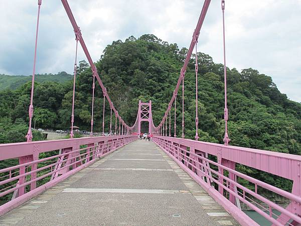 全長約153.8公尺,寬4公尺,兩端橋塔條高約18.75公尺,是一座粉紫色的鋼索吊橋