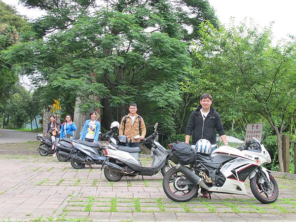 原本這涼亭旁的空地無車,大伙的五台摩托車就隨意停占了一大區域