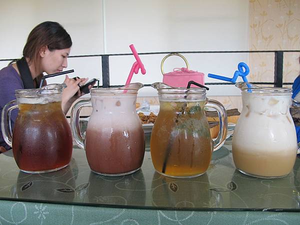 打辣茶(紅茶)、科科可可(巧克力牛奶)、打夏茶(綠茶)、那山奶茶