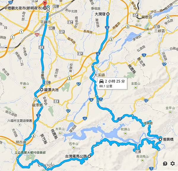 大伙先在八德大潤發集合後,直接騎往大溪和復興鄉的道路